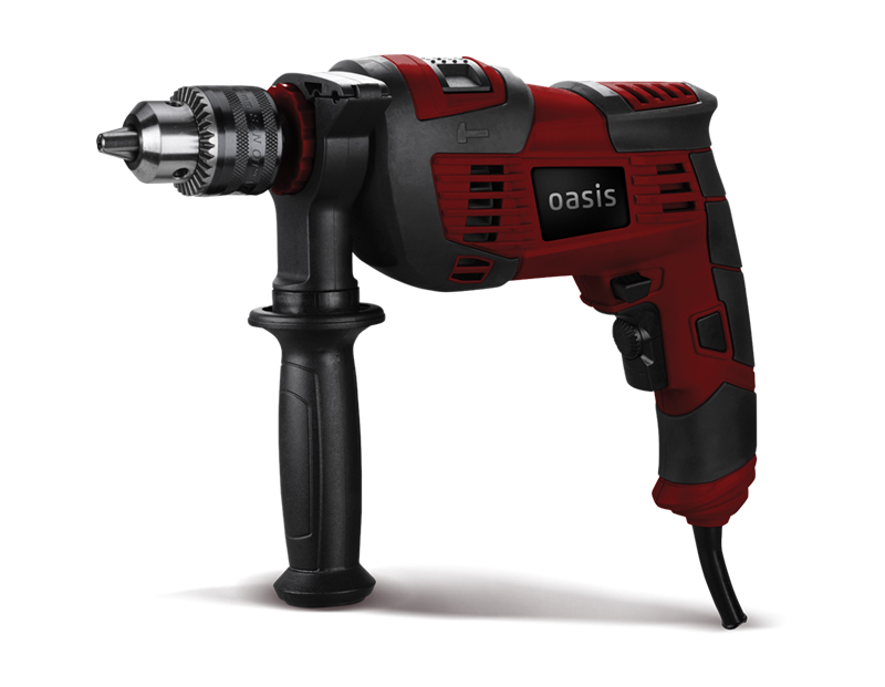 Электрическая ударная дрель Oasis для выполнения сверлильных работ в металле, дереве, пластмассе в режиме сверления; в бетоне, кирпиче и т.п. в режиме сверления с осевыми ударами.
