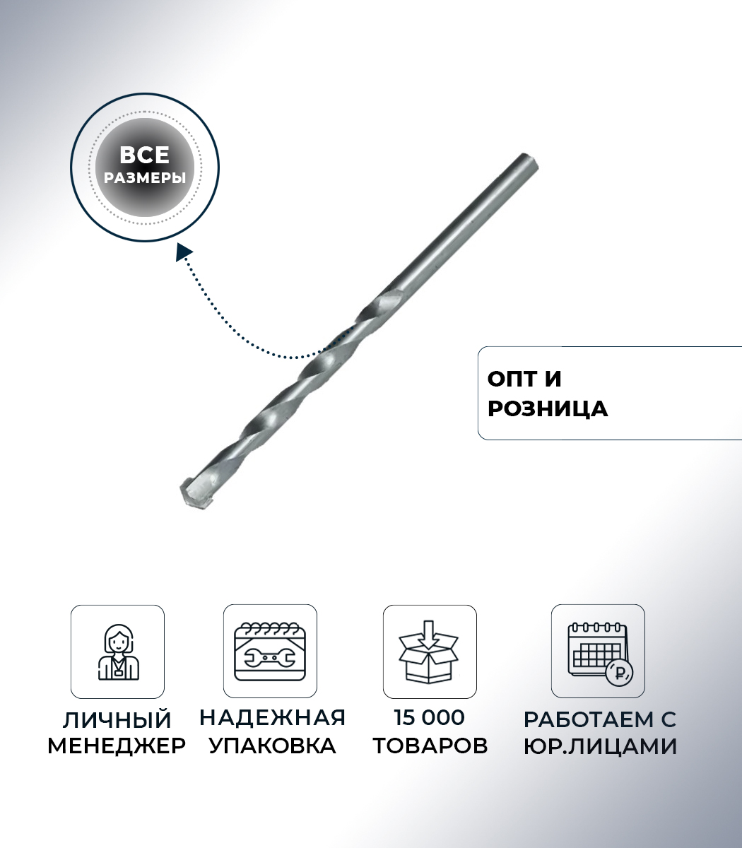 Сверло с твердосплавной напайкой ЮМКОМ используется в дрелях для ударного сверления бетона, камня, кирпича.