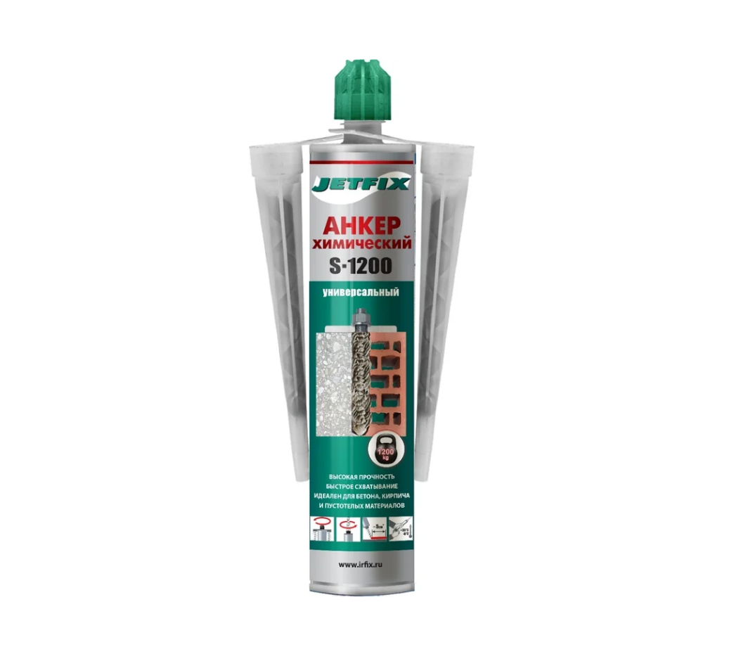 Универсальный химический анкер JETFIX серый, 300 мл 21030 на основе полиэфирной смолы предназначен для профессионального крепежа деталей при нагрузках до 1200 кг на 1 болт М12. Идеален для крепления санитарного оборудования, спутниковых тарелок, фасадов, элементов окон, навесов, стальных конструкций, ворот, ограждений, лестниц, станков, поручней и многоярусных стеллажей с помощью болтов, резьбовых шпилек и арматурных стержней.