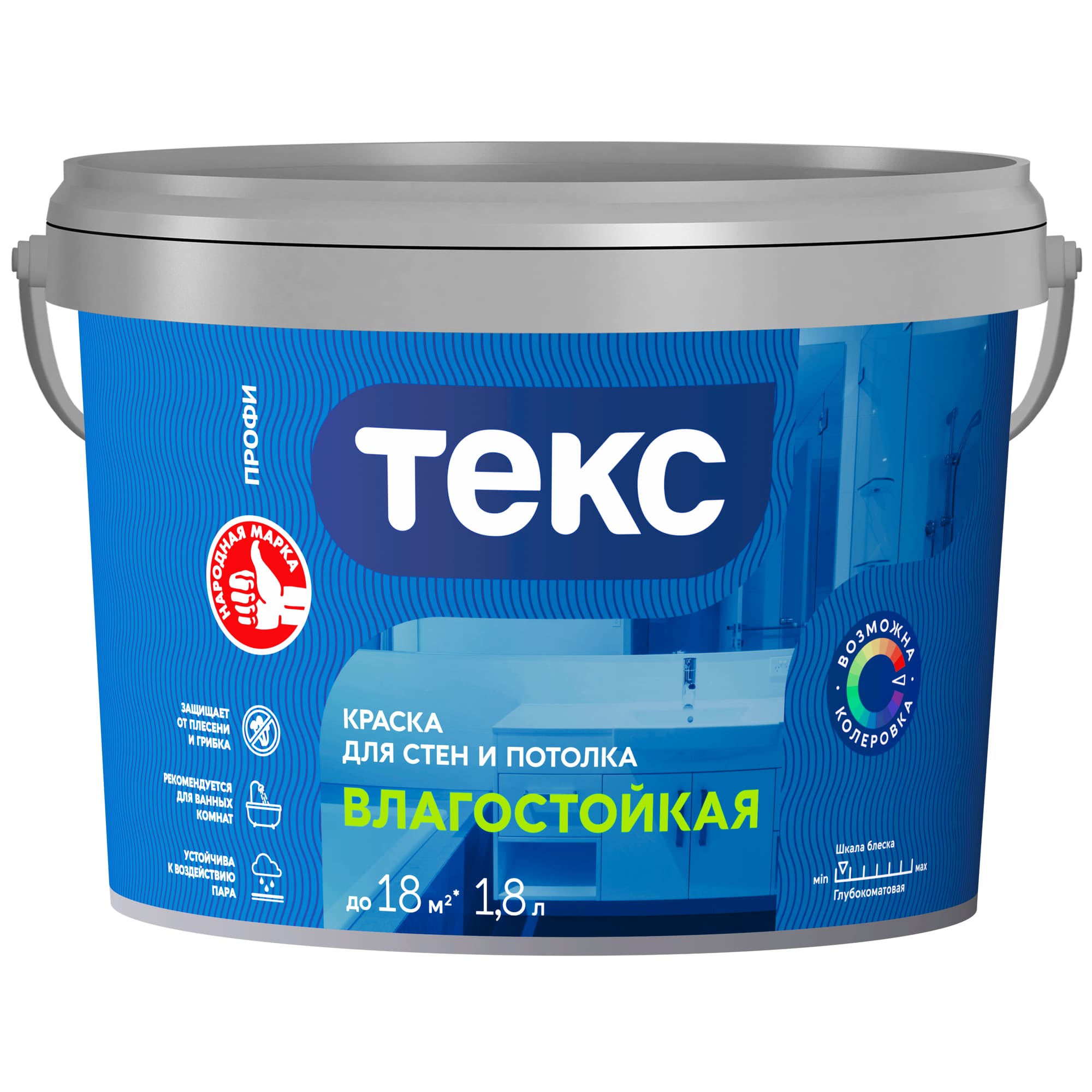 Краска для стен и потолка ВЛАГОСТОЙКАЯ / ПРОФИ ТЕКС A 1,8л