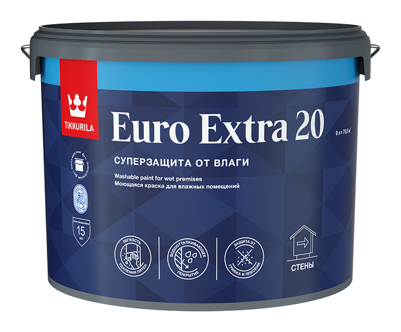 Краска для влажных помещений Tikkurila EURO EXTRA 20 C полуматовая 9л Tikkurila RU - 700001110