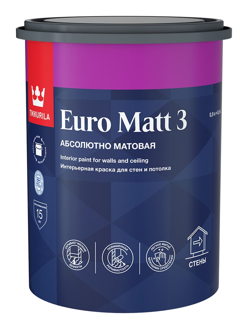 Краска интерьерная EURO MATT 3 Tikkurila A глубокоматовая 0,9л