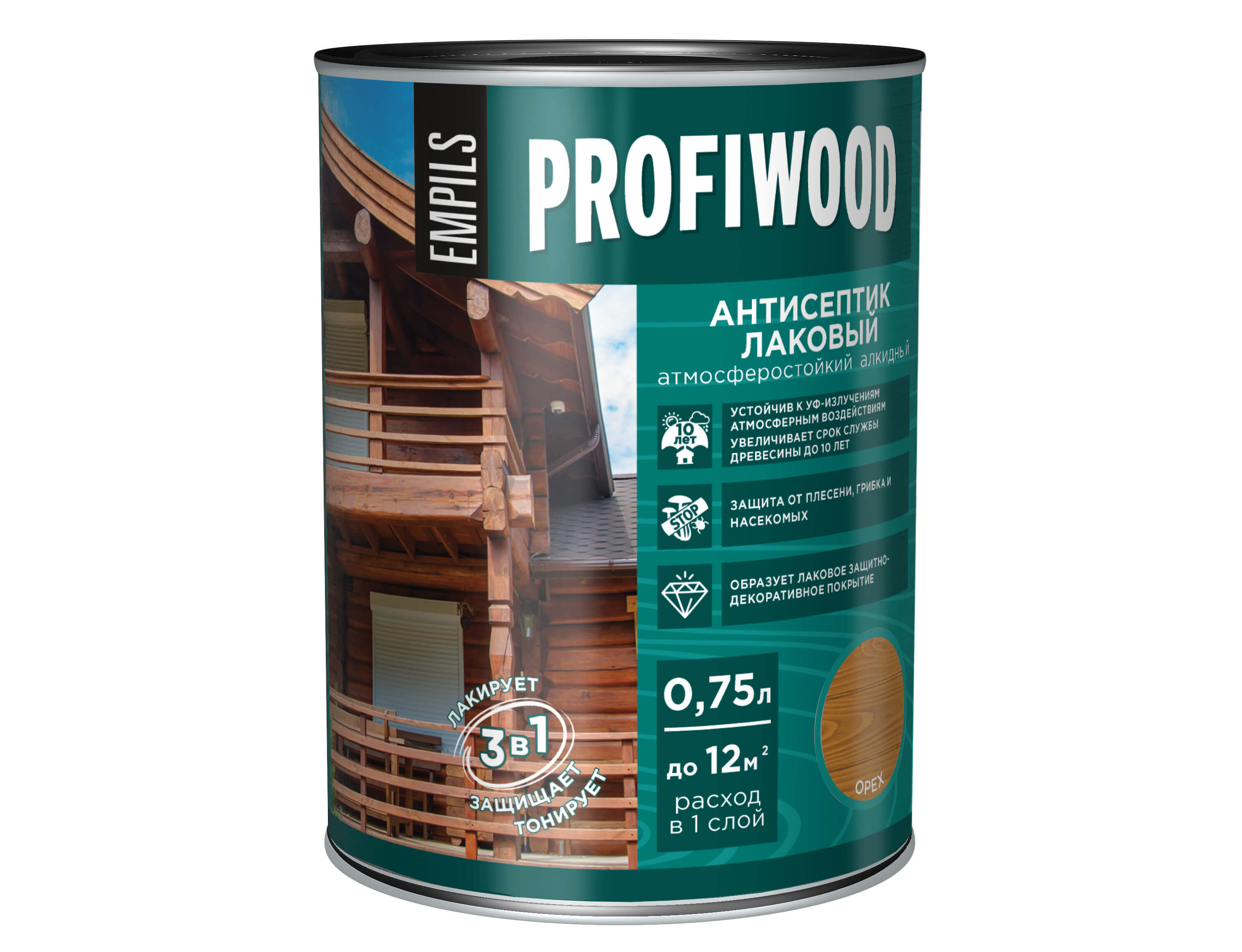 Антисептик лаковый PROFIWOOD атмосферостойкий алкидный орех 0.75 л / 0,7 кг EMPILS –
