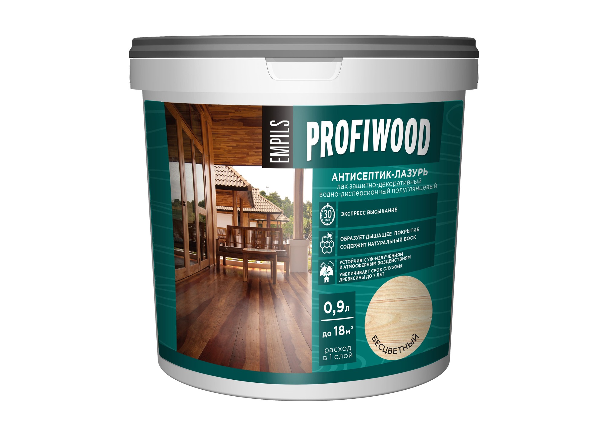 Антисептик-лазурь PROFIWOOD декоративный атмосферостойкий ВД полиакрил. бесцветный 0,9л EMPILS –