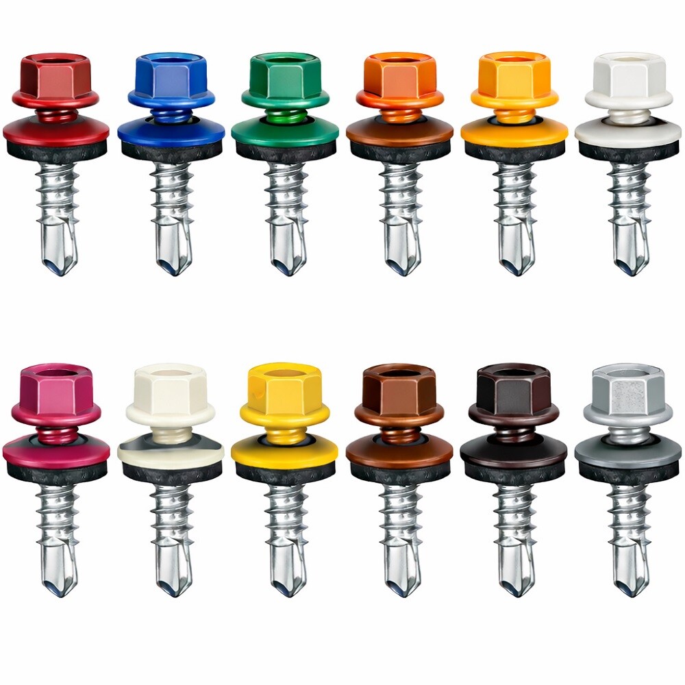 Саморезы для кровли размера 5,5x25, окрашенные в этот цвет, предназначены для монтажа деревянной обрешетки к кровле, а так для облицовки окрашенных фасадов. Они поставляются с прорезиненной шайбой, так называемой EPDM-прокладкой, которая плотно прилегает к поверхности после закручивания и не дает ппасть в отверстие воде и грязи из внешней среды. Благодаря этому дерево не начнет загнивать, а металлопрофиль не будет ржаветь в месте перфорации.