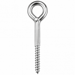 Шуруп с кольцом изготовлен из стальной проволоки с одной стороны он имеет универсальную резьбу подходящую одинаково хорошо как для дерева так и для пластика, например дюбеля. С другой стороны проволока изогнута таким образом что образует замкнутое кольцо правильной формы. Хоть кольцо плотно смыкается все же нужно знать что оно не заварено.
