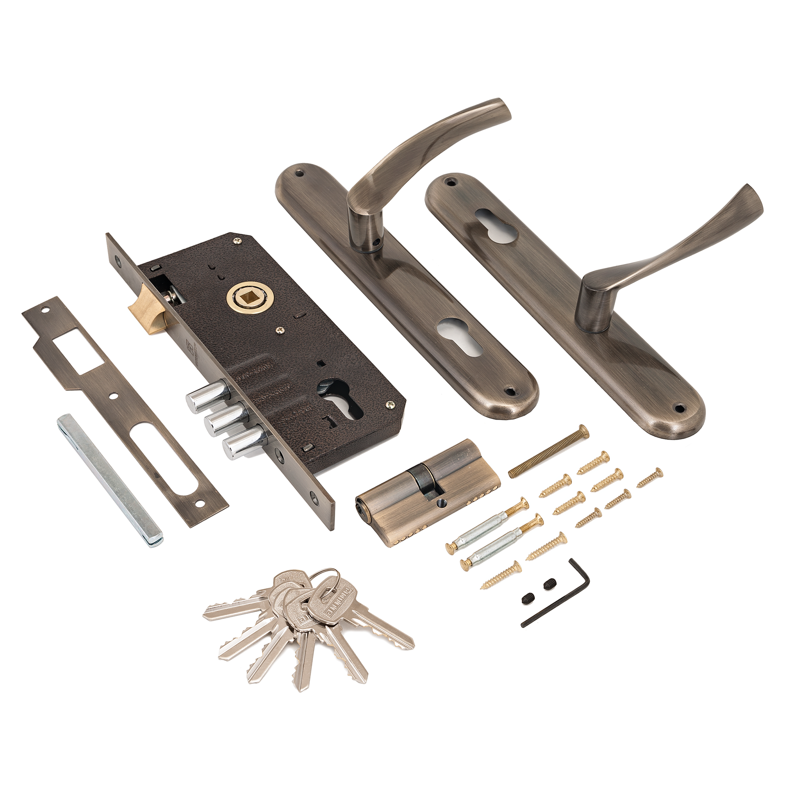 Замок врезной АЛЛЮР ручки в комплекте 0203 AB старая бронза