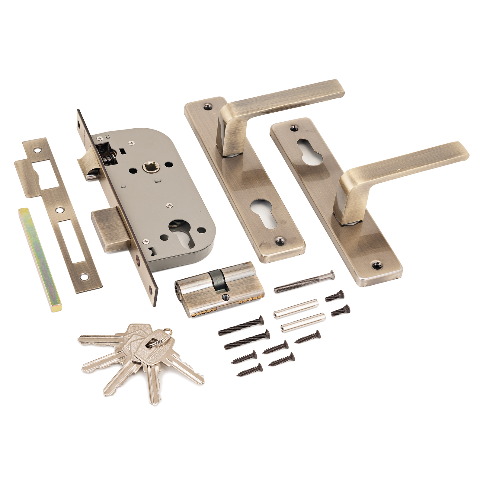 Замок врезной АЛЛЮР ручки в комплекте 126/1 AB старая бронза