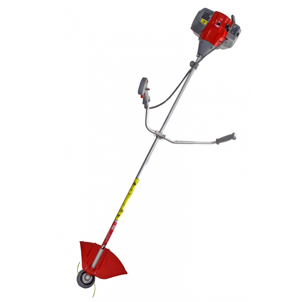 - Рукоятка велосипедного типа. Всё управление двигателем находится на рукоятки управления. Оператор лучше контролирует процесс кошения.