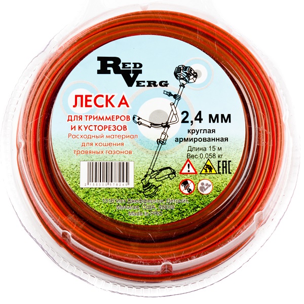Леска REDVERG 2,4 мм, 15 м, круглого сечения,с металлическим сердечником, является расходным материалом для триммера.